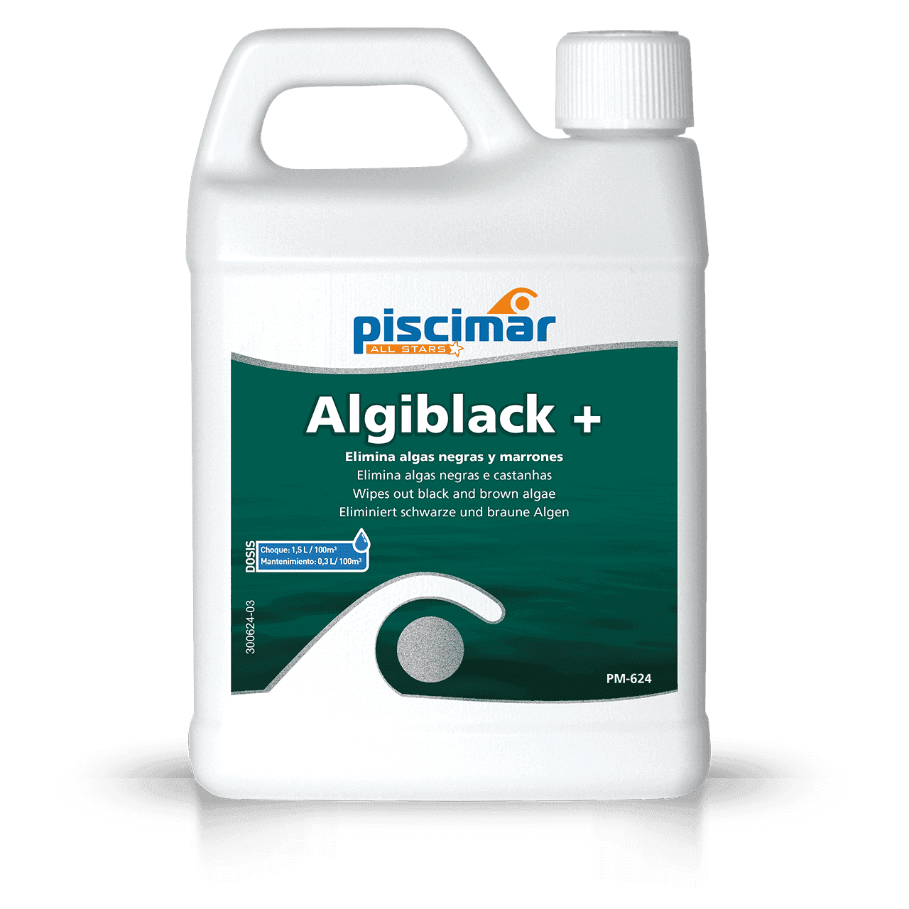 1l Flasche Konzentriertes Algenvernichtungsmittel für Schwimmbecken zur Bekämpfung von Algen aller Art, wie Grün-, Gelb- und Schwarzalgen. Algiblack+ ist auch für Salzwasserbecken geeignet.