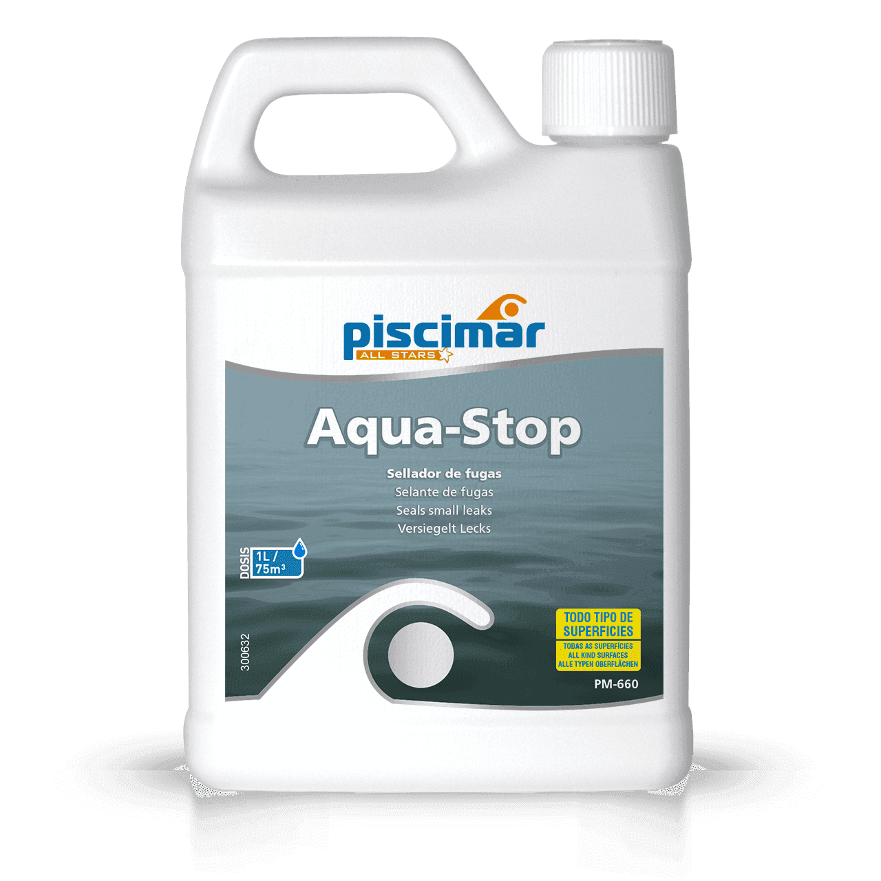 Dosierung: 1l/75m3. a) Wenn sich das Leck im Becken befindet, das Produkt direkt auf die Wasseroberfläche geben. b)Wenn der Ort des Lecks unbekannt ist oder sich in den Rohren befindet, dann das Produkt über den Skimmer anwenden.